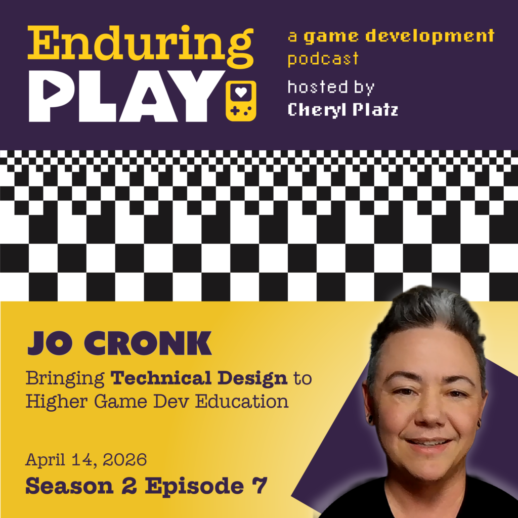 From software engineer to technical designer to game design professor – Jo Cronk has turned a successful career bridging the gap between engineers and creatives at companies like Crystal Dynamics and Snowblind Studios into a thriving career as an Assistant Professor of Technical Design at one of the top-rated game development schools in the world, DigiPen Institute of Technology. Jo brings extensive technical prowess and a mastery of game design techniques to both their course material and their approach to teaching. In this episode, we explore what technical design really means, the complexities of ideation and pre-production in the game development process, specific advice for navigating prototyping, the intricacies of video game engines, modern video game development curriculums, and much more. There are also some unexpected insights about human behavior, like how younger students show up in class and how that maps to disruptive behavior we see in games. Whether you’re considering a video game education or looking to better understand your younger audiences and engineering colleagues, there’s something in this episode for you.